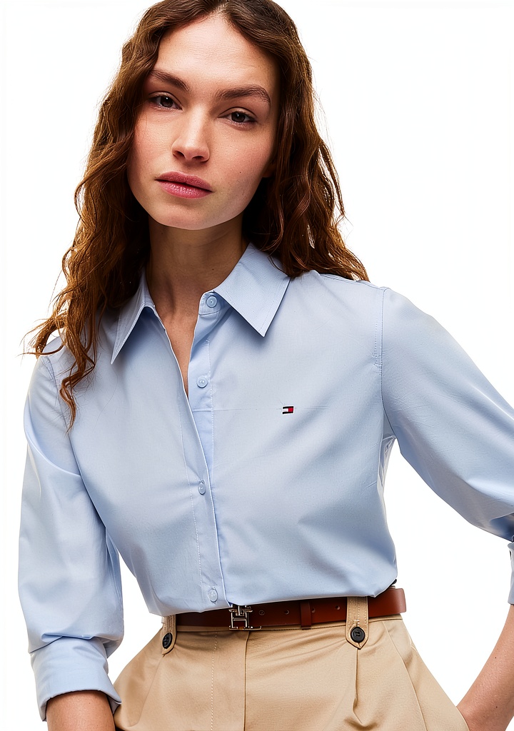 La camicia Tommy Hilfiger donna in poplin con colletto a punta rappresenta l’essenza dello stile classico e senza tempo. Realizzata con un taglio regolare, offre una vestibilità comoda e adatta a diverse morfologie. Il tessuto è composto per il 51% da cotone rigenerato, il 46% da cotone e il 3% da elastan, garantendo morbidezza, traspirabilità e una buona elasticità per massimo comfort. Il design pulito e il colletto a punta la rendono un capo versatile, ideale per essere abbinato con eleganza in molteplici contesti. Disponibile in taglie dalla 38 alla 76 e in colori come blu, bianco e rosa, soddisfa le esigenze di un’ampia gamma di clienti.