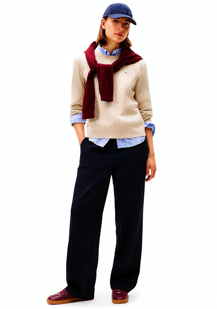 Tommy Hilfiger garantisce qualità e stile dal 1985, con un’attenzione alla sostenibilità attraverso l’uso di cotone rigenerato. Il design a trecce e i colori iconici come blu scuro, bianco e rosso distinguono questo prodotto, offrendo un capo durevole e alla moda. La vasta gamma di taglie e colori assicura che ogni cliente trovi la vestibilità perfetta, supportata da recensioni positive che evidenziano comfort e affidabilità.
