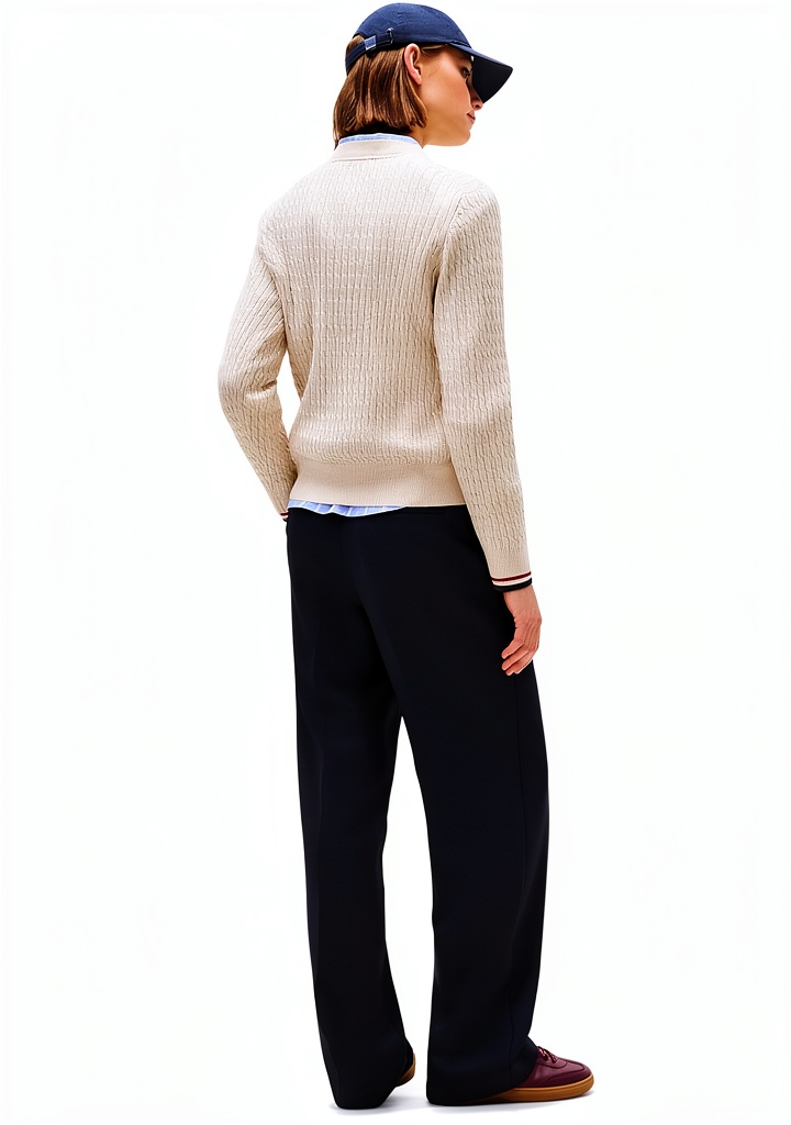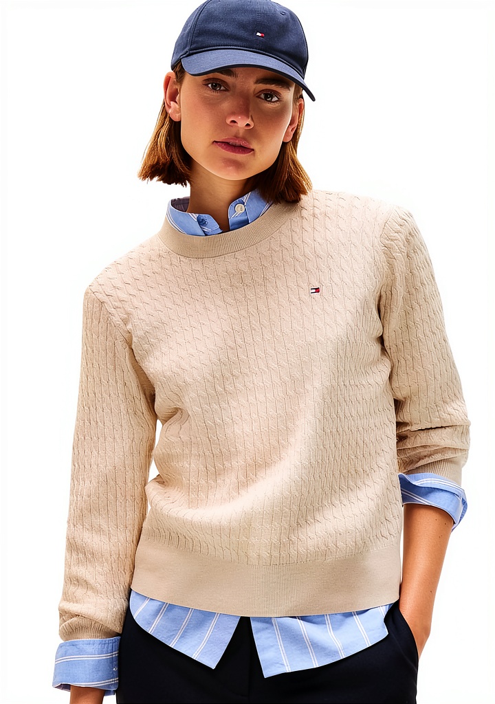 Il Tommy Hilfiger Donna Pullover Cable Fine Maglia a Trecce è un capo iconico che combina design classico e materiali di alta qualità. Realizzato al 100% in cotone rigenerato, offre un comfort ottimale con un taglio che dona eleganza alla silhouette. Disponibile in taglie da XXS a 3XL e colori come blu, rosso, nero e avorio, questo pullover presenta uno scollo rotondo e la caratteristica bandierina Tommy Hilfiger ricamata, rendendolo un must-have per il guardaroba femminile. Ideale per la mezza stagione e l’inverno, è lavabile in lavatrice e adatto all’asciugatrice, garantendo praticità nella cura.